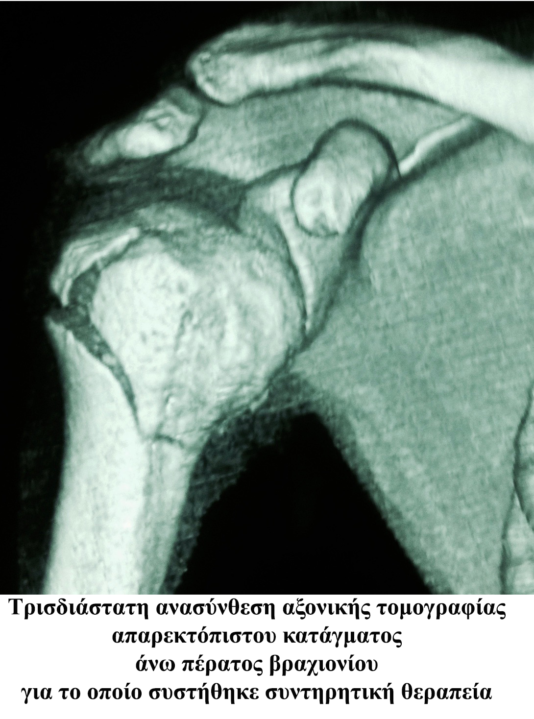 Σε περίπτωση μη παρεκτοπισμέων καταγμάτων η συντηρητική θεραπεία προτείνεται συχνά. Ωστόσο συνεχής ακτινολογικός έλεγχος και προσεκτική κινησιοθεραπεία του ασθενή είναι απαραίτητη.